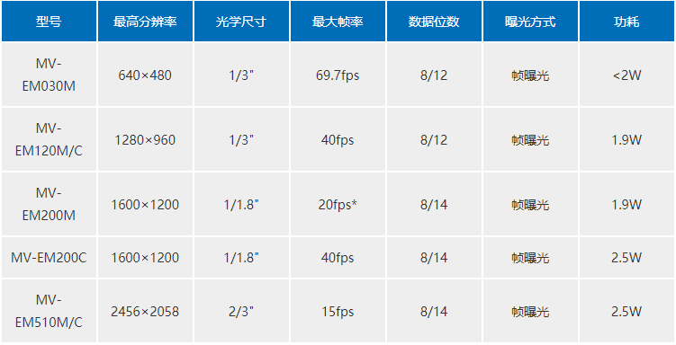 *MV-EM200M可(kě)定制(zhì)40fps
