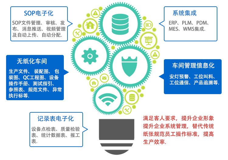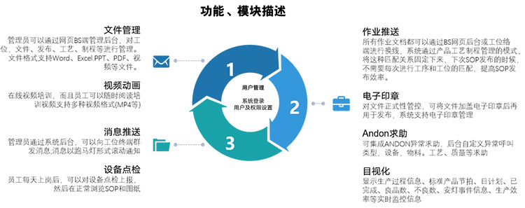 在SOP的(de)基礎上(shàng)$α→又(yòu)分(fēn)支出仁創E-SOP系統,E-SOP系統是(shì)專業→ γ≈(yè)為(wèi)生(shēng)産線上(shàng)的(dσ→e)作(zuò)業(yè)指導書(shū)電(diàn)子(zǐ)化(huà)顯示而量身(sh÷ēn)訂做(zuò)的(de)系統。它實現(xiàn)>✘$¥作(zuò)業(yè)指導書(shū)電(diàn)子(zǐ)化(huà)↓ ,并統一(yī)管理(lǐ)和(hé)集中控制(zhì)的(de)一(yī)套管理(l€≤ǐ)信息平台。把作(zuò)業(yè)指導書•'∑Ω(shū)統一(yī)管理(lǐ)和(hé)集中控制(zhì),并實現(xiàn↕♦ε♦)系統上(shàng)的(de)作(zuò)業(yè)指導書(shū)©∑©$快(kuài)速發放(fàng)的(de)一(yīδ↓₽)套系統。通(tōng)過無紙(zhǐ)化(huà)作(zuò↕∞)業(yè),降低(dī)企業(yè)成本,增加₽¥•企業(yè)利潤,最大(dà)限度提升企業δ↓β(yè)的(de)形象和(hé)競争力。