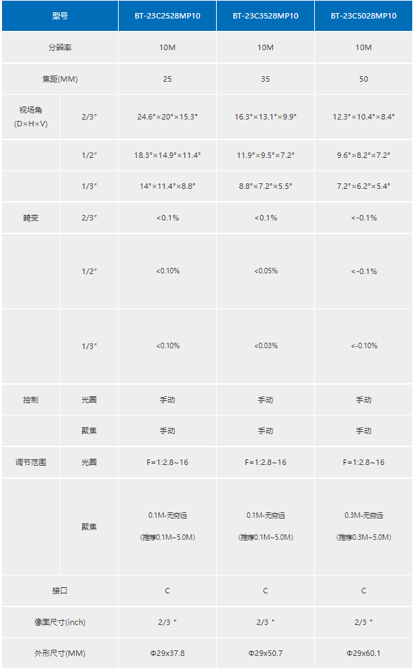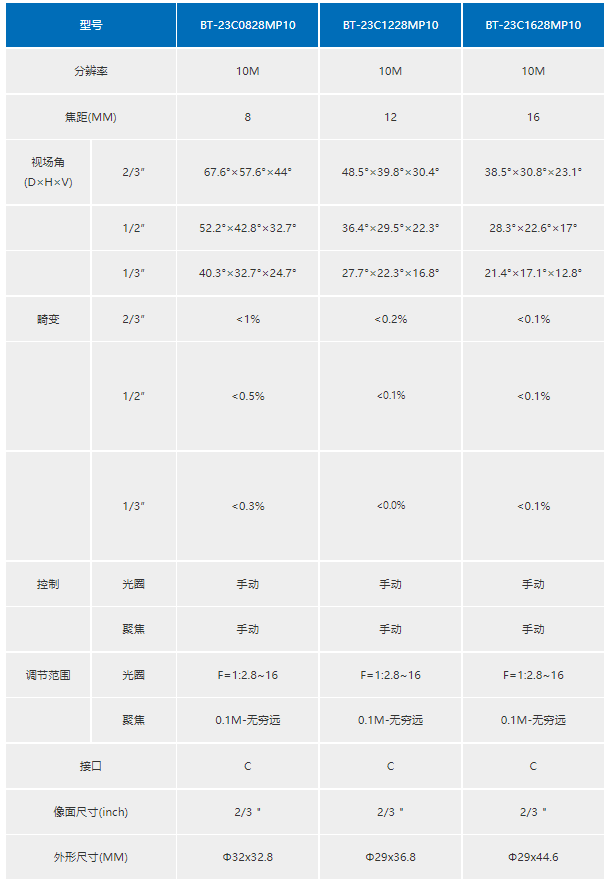 2/3”系列 BT-23C0828MP10工(δ∏gōng)業(yè)鏡頭
