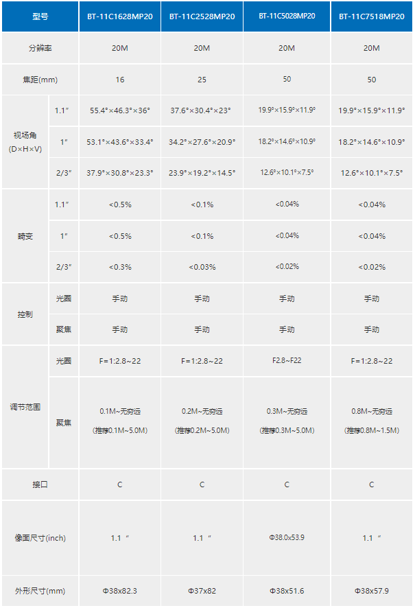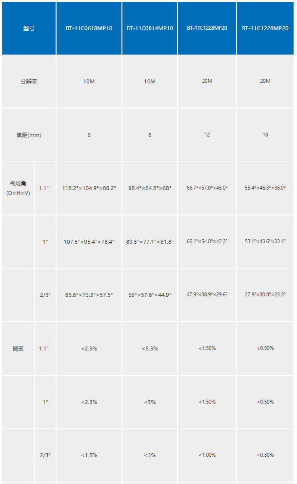 1.1”系列 BT-11C0618MP₩γ✔Ω10工(gōng)業(yè)鏡頭